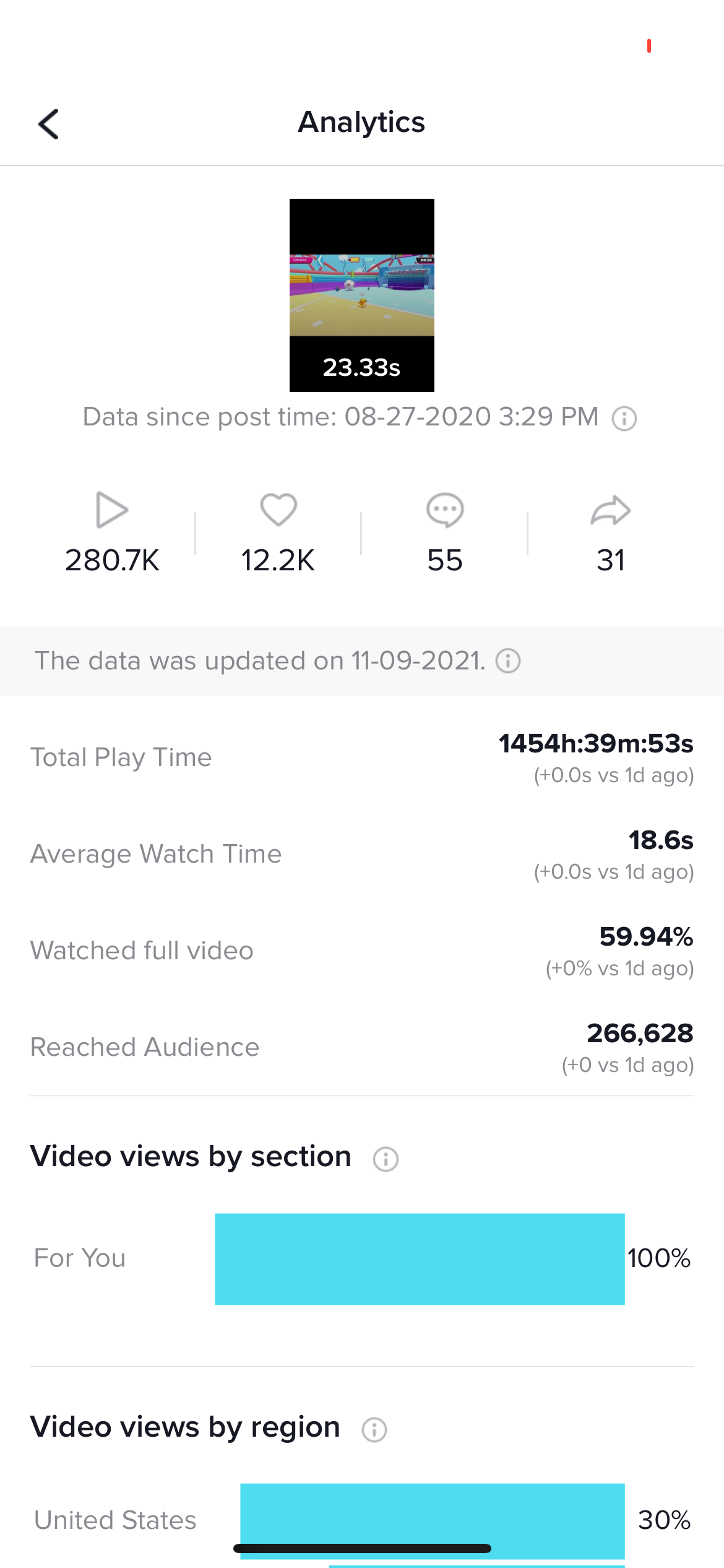 Metrics from the TikTok that I posted that went semi-viral. It was from my Twitch stream playing a pretty popular game at the time.